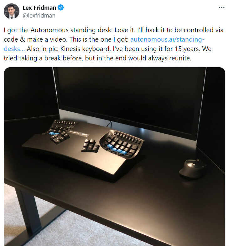 - He’s mentioned using a Kinesis keyboard for around 15 years. That’s a huge amount of muscle memory; swapping to a flat laptop board would feel slow and error‑prone. (X (formerly Twitter))